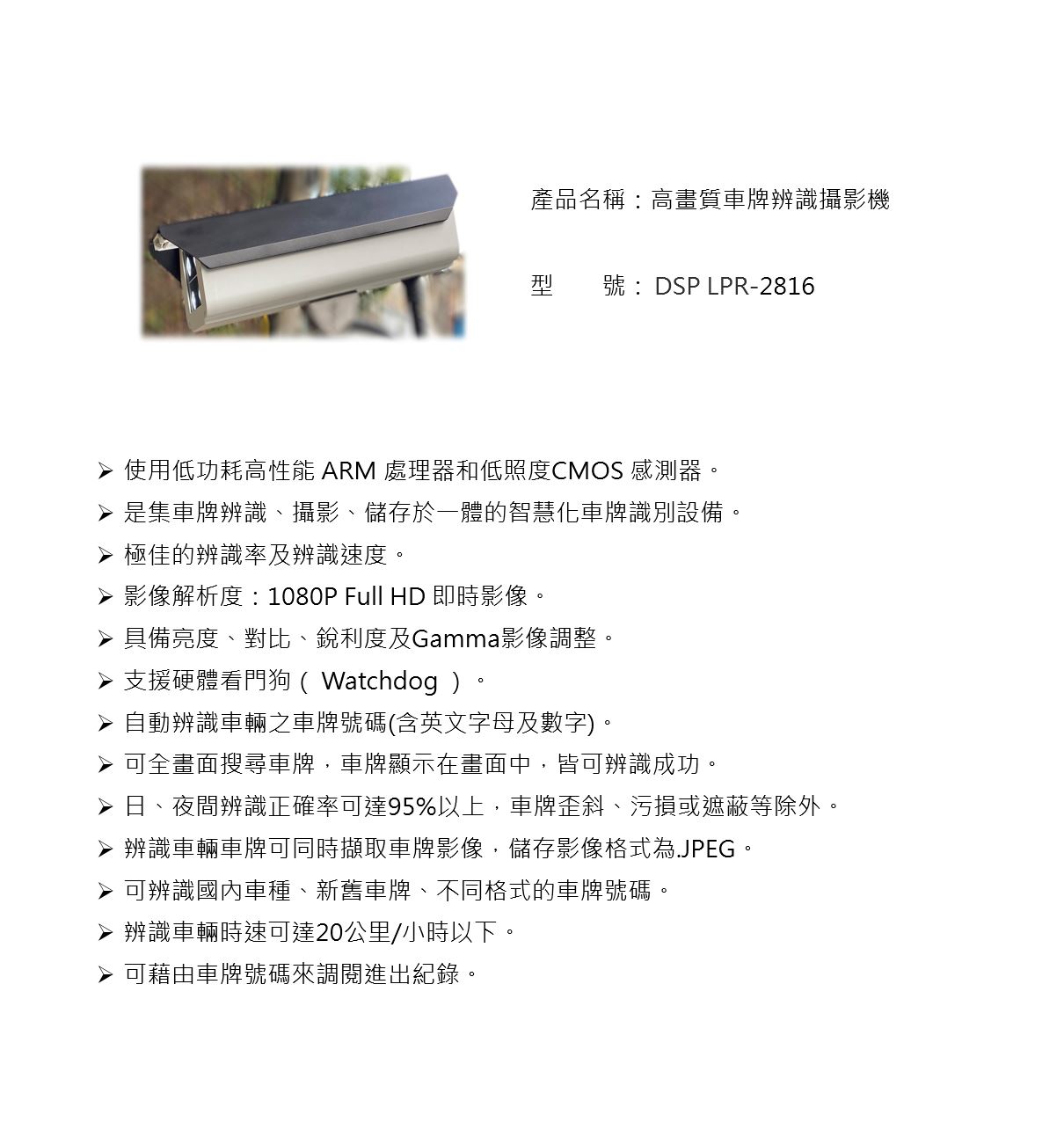 高畫質車牌辨識攝影機